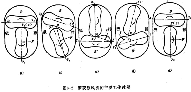 羅茨鼓風(fēng)機系屬容積回轉(zhuǎn)鼓風(fēng)機,其按轉(zhuǎn)子的形狀可分為兩葉型和三葉型。三葉型轉(zhuǎn)子每轉(zhuǎn)動一次由 兩 個轉(zhuǎn)子進行三 次吸、排氣。與二葉型相比,氣體脈動性小,振動也小,噪聲低.不問主要介紹一下二葉羅茨風(fēng)機的工作原理。